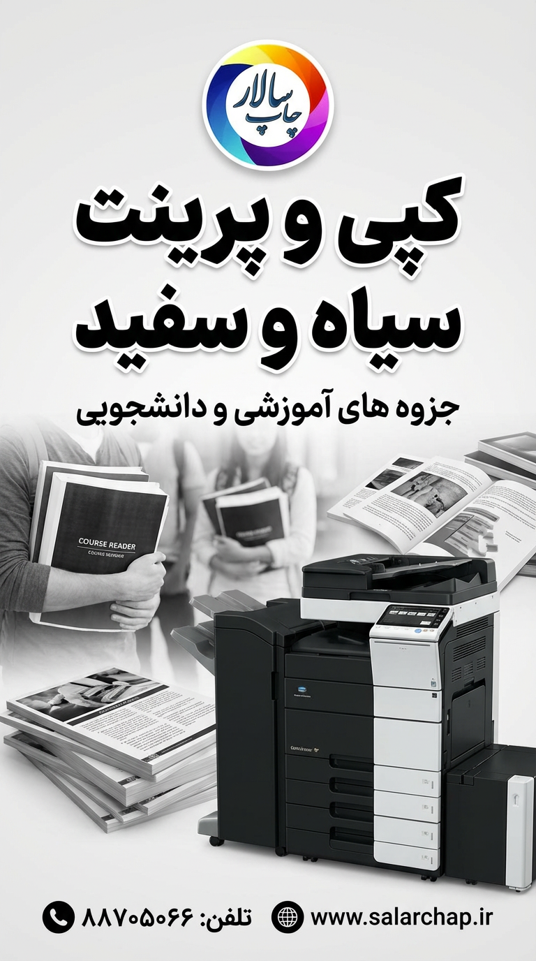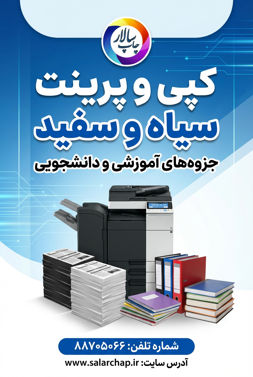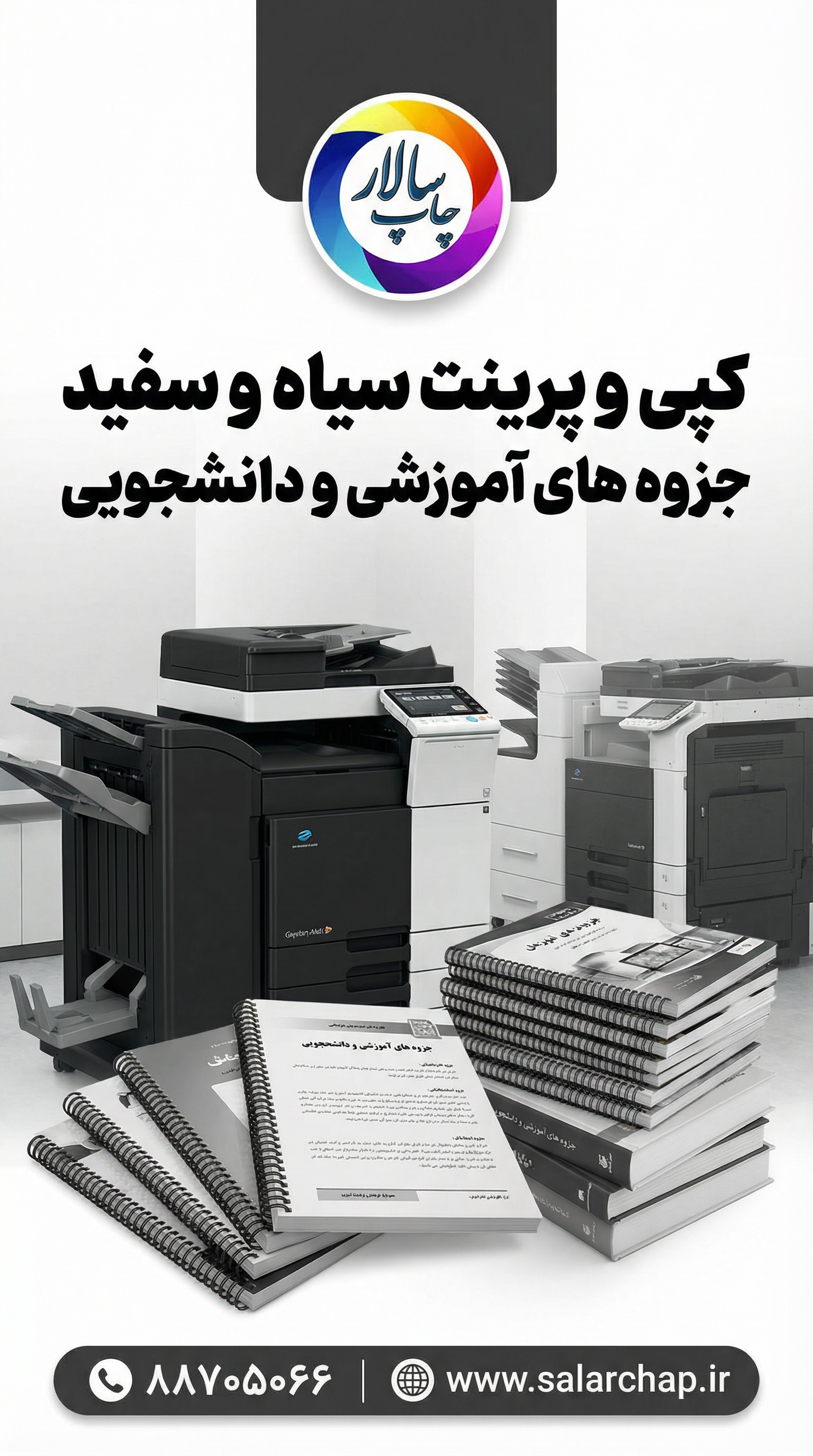 موسسه چاپ و تکثیر دیجیتال سالار با بیش از 20 سال سابقه در زمینه چاپ و همکاری با بزرگترین شرکتهای پایتخت و همچنین با بهره گیری از به روزترین دستگاهها در کمترین زمان و پایین ترین قیمت آماده خدمت رسانی به شرکتهای خصوصی و دولتی، موسسات آموزشی، مدارس و کاربران می باشد.