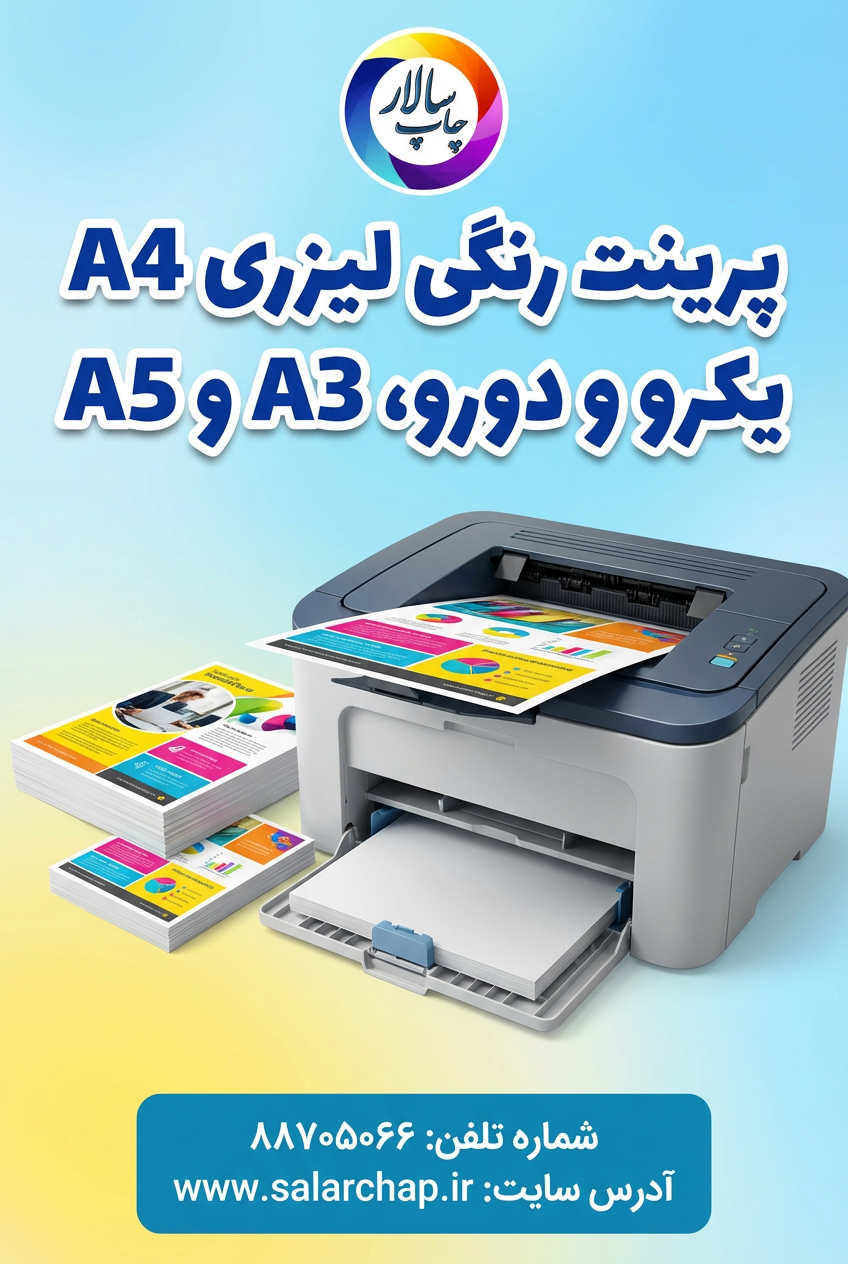 با پرینت رنگی با کیفیت فوقالعاده، به طرحها و اسناد خود زندگی ببخشید! مناسب برای ارائههای حرفهای، پروژههای درسی و هر نوع کاری که نیاز به جذابیت بصری دارد. رنگهای زنده و شفاف، جزئیاتی با دقت بالا ارائه میدهند. همین حالا سفارش دهید و تأثیرگذار باشید!